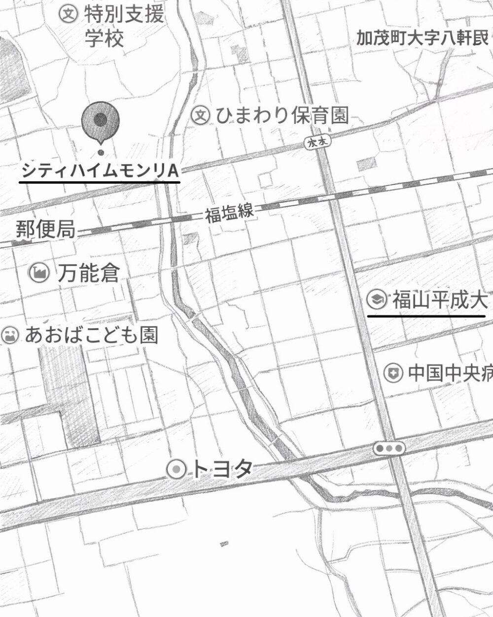 福山平成大学まで徒歩13分 |